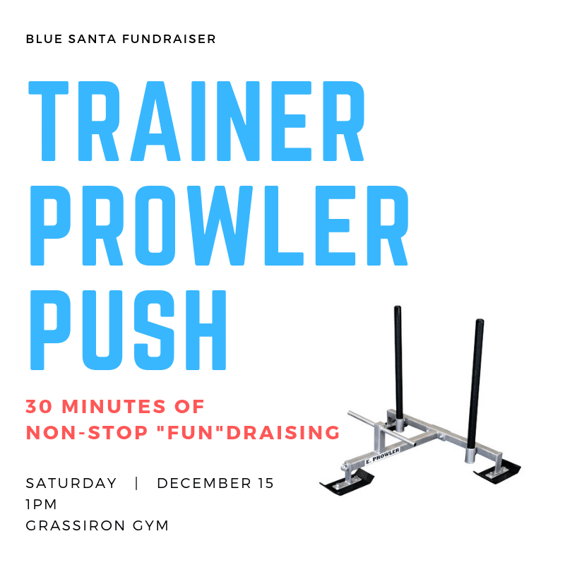 Our gym family has adopted 4 Blue Santa families this year, so it's time to turn the tables! The trainers will pushing and panting 'til the clock strikes 30... while you cheer us on (or heckle to your heart's content).