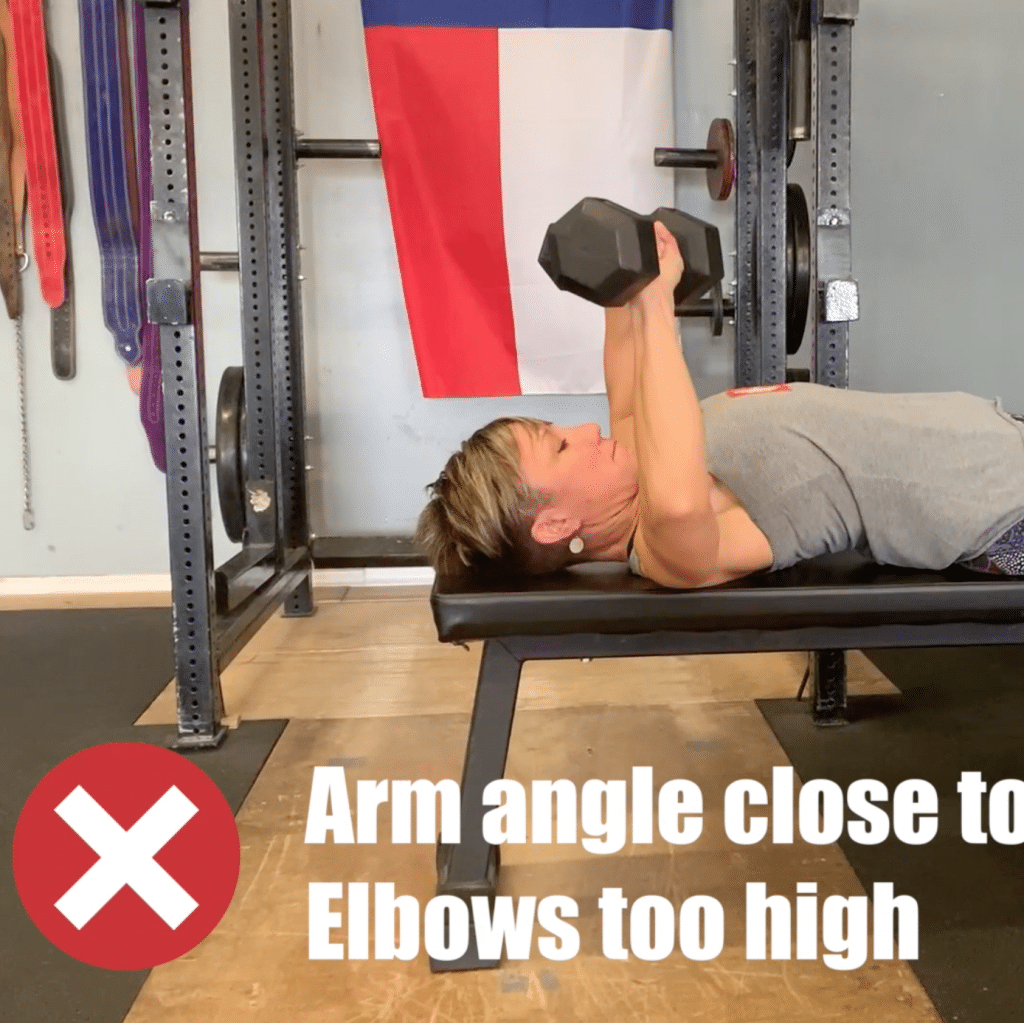 - With heavier weights, the dumbbell will make contact with your torso (assuming a full range of motion). With lighter weights, this is not necessarily true. Don’t compromise your arm angle in order to your touch chest!
